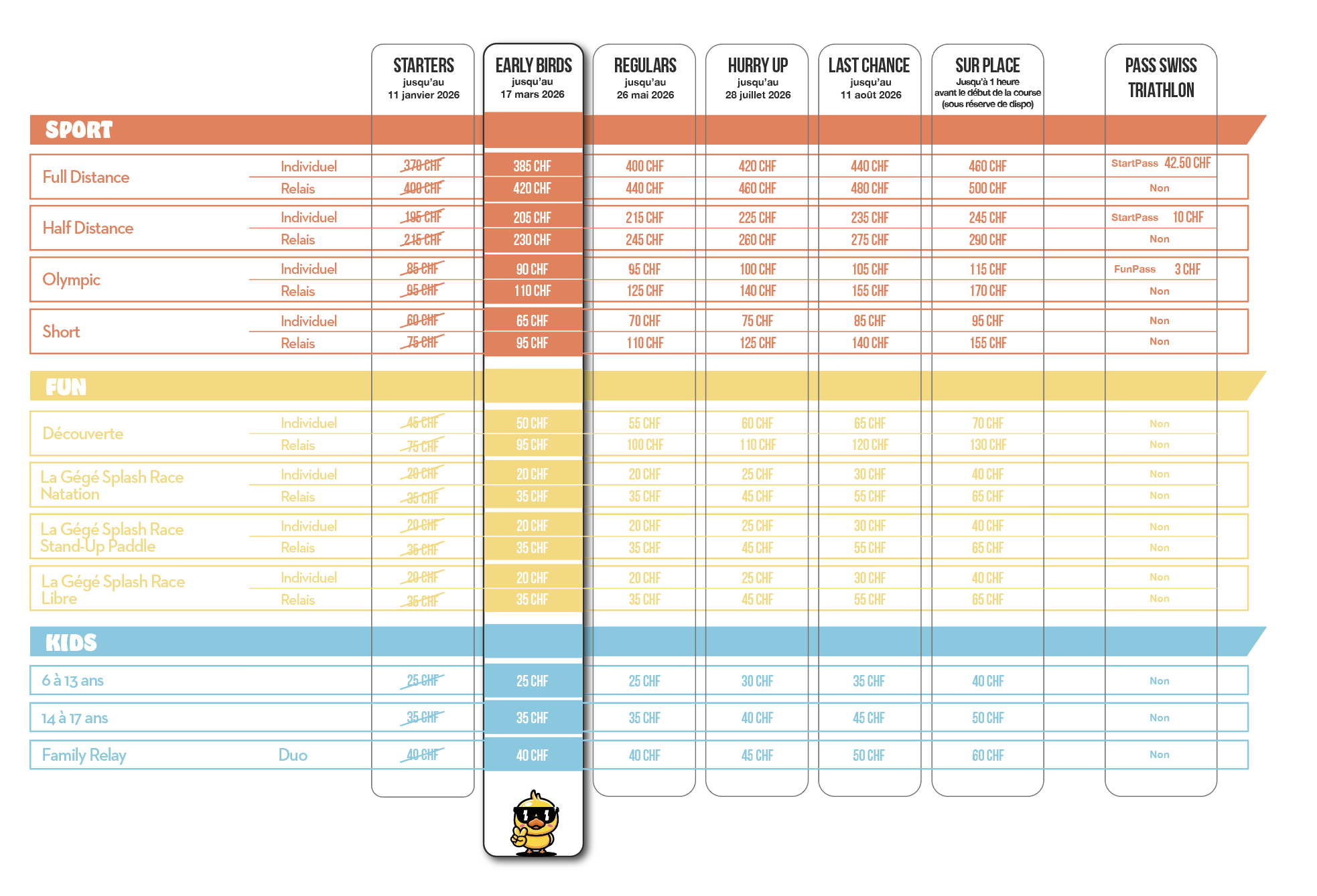 - CHF 19.– (Half, Olympic, Short)